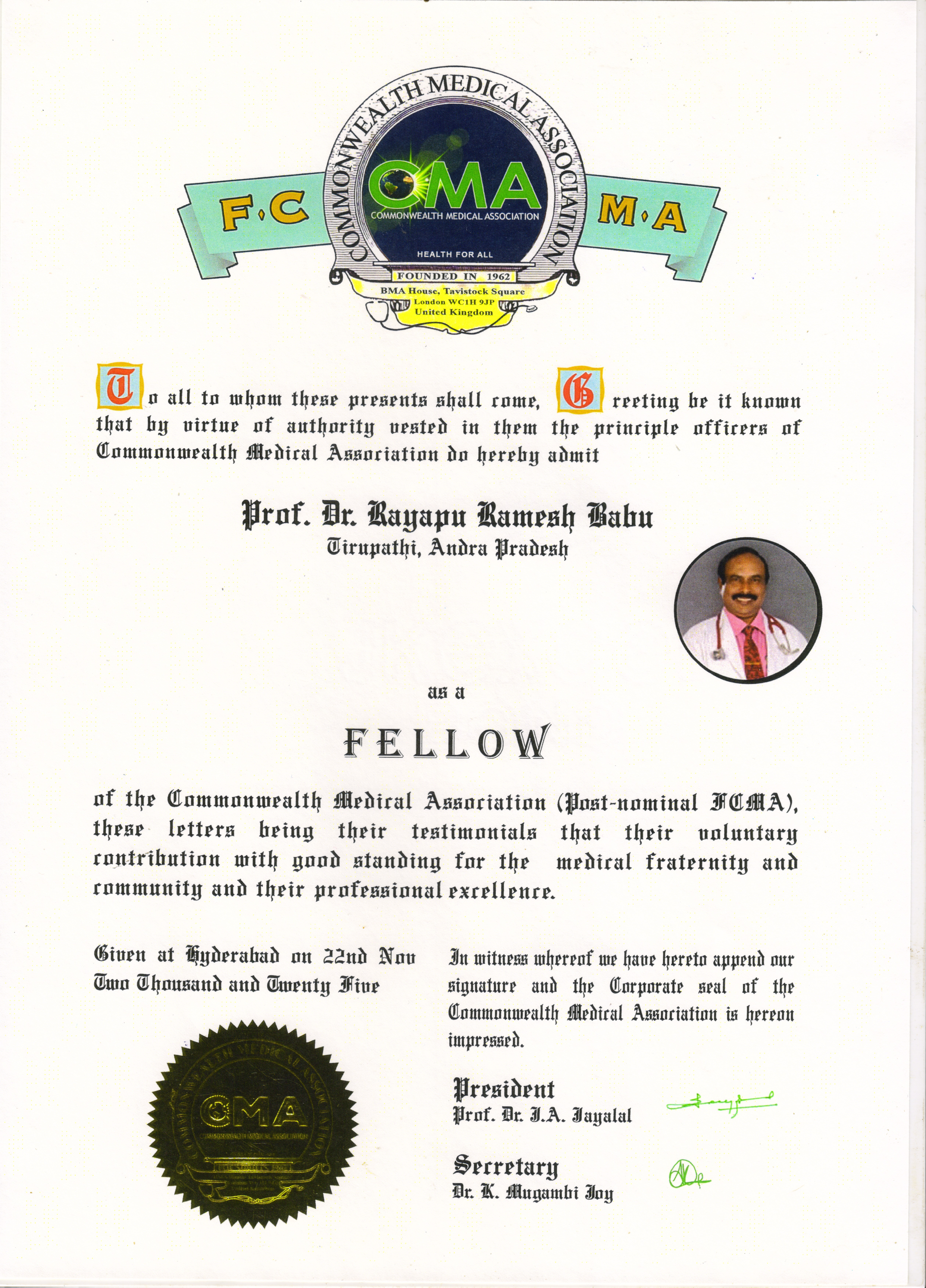 Prof. Dr. Rayapu Ramesh Babu has successfully organized an extraordinary, unique, and exemplary academic initiative in the country. He conducted 50 regular monthly Super Specialty Academic Conferences virtually from November 2020 to September 2024, covering diverse fields such as Cardiac Sciences, Medical Oncology, Neurosciences, Nephrology, Urology, Gastroenterology, Endocrinology, Surgical Oncology, Rheumatology, Haematology, Reproductive Medicine & Surgery, updates on Medical & Surgical Specialities and Interventional Radiology. These conferences featured eminent legends and senior faculty in each specialty, with over 750 national and international speakers. The initiative received overwhelming appreciation from across India and abroad.More than 2,50,000 postgraduate students, practicing clinicians, IMA doctors, and faculty from medical colleges nationwide participated and conveyed their heartfelt gratitude to Dr. Ramesh Babu for providing such an exceptional platform to learn from distinguished teachers from India and around the world. All participants received 4 Continuing Medical Education (CME) credit hours from the Andhra Pradesh Medical Council for each conference, completely free of cost. In total, approximately 200 CME credit points were awarded. During the year 2023 alone, a series of International Conferences were organized to educate and empower Primary Care Physicians across the country. Such extensive academic activities have never been conducted anywhere in India or globally by any medical college, medical institution, or medical association—particularly notable given that they were successfully executed during the challenging COVID-19 pandemic period. All programs strictly adhered to the protocols, principles, and ethical guidelines issued by the Government of India, with no financial support from pharmaceutical companies or corporate hospitals. This principled approach was widely appreciated. The initiative also received commendation from the Hon’ble Prime Minister of India and from the Chairman, Andhra Pradesh Medical Council (APMC).