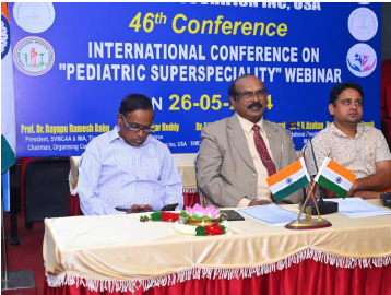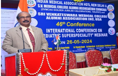 This is the information about the 46th Conference "International Conference on paediatric super speciality " (webinar) –successfully conducted on 26.05.2024 from morning 9.00 am to evening 6.00 pm with 18 renowned speakers from India and abroad and jointly organized by the Indian Medical Association HQ's New Delhi - S. V. Medical College Alumni Association (SVMCAA), Tirupati & S. V. Medical College Alumni Association USA Inc. The Andhra Pradesh Medical Council has awarded accreditation of 2 (Two) CME Credit hours for this Conference. With the blessings and wishes from our beloved Chief Patron, IMA, past President, World Medical Association, Medical Council of India & Indian Medical Association, Dr. Ketan Desai ji and Dr. R. V. Asokan, National President, IMA , Dr. Anil Kumar J. Naik, HSG, IMA, and Dr. Shitij Bali Treasurer, IMA HQRs, with the Chairmanship of the Organizing Committee, Prof. Dr. Rayapu Ramesh Babu, President, SVMCAA, Tirupati & Dean, IMA CGP, HQrs -2023, the conference was inaugurated by the Chief Guests: 1. Dr. R.V.Kumar, Director,Vice-Chancellor, SVIMS University, Tirupati,AP., 2.Dr .Gutta Suresh, National Vice- President, IMA 3.Dr. Jayesh Lele Past HSG & National Vice - President, IMA 4. Dr.T. Nanda kumar, President, SVMCAA USA Inc , 5.Dr.Babji , Vice-Chancellor Dr YSR University of Health Sciences AP, 6. .Dr.D Sreehari Rao , past National Vice- President,IMA, 7. Dr.M.Thyagaraja Reddy, 8.Dr.N.Subramanyam & 9.Dr.C.Srinivasa Raju , Past Presidents , IMA AP State. 10. Dr.Ravindranath, Treasurer, IMA AP State 12.Dr.P.S.Sharma, Director , CGP, IMA AP State 12. Dr.T. Muneeswar Reddy, Observer, APMC ,13. Dr. T. Janardhan, President, 14. Dr. Venkataramana, Secretary and 15.Dr. Krishna Kanth, Treasurer IMA, Tirupati, have participated, around 1700 Participants are continuously online from morning 9.00 am to evening 6.00 pm. This programme has been sponsored by the SVMCAA USA INC. The total number of registrations above 3250. Thank you one and all.