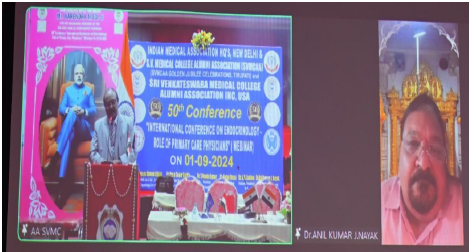 This is the information about the 50th Conference "International Conference on Endocrinology and role of Primary care Physicians”" (webinar) –successfully conducted on 01.09.2024 from morning 9.00 am to evening 6.00 pm with 18 renowned speakers from India and abroad and Jointly organized by the Indian Medical Association HQ's New Delhi - S. V. Medical College Alumni Association (SVMCAA), Tirupati & S. V. Medical College Alumni Association USA Inc. The Andhra Pradesh Medical Council has awarded accreditation of 2 (Two) CME Credit hours for this Conference. With the blessings and wishes from our beloved Chief Patron, IMA, past President, World Medical Association, Medical Council of India & Indian Medical Association, Dr. Ketan Desai ji and Dr. R. V. Asokan, National President, IMA, Dr. Anil Kumar J. Naik, HSG, IMA, HQRs and Dr.Shitij Bali Treasurer, IMA HQRs, with the Chairmanship of the Organizing Committee, Prof. Dr. Rayapu Ramesh Babu, President, SVMCAA, Tirupati & Dean, IMA CGP, HQrs -2023, the conference was inaugurated by the Chief Guests: 1.Shri T.Krishna Babu, IAS , Special Chief Secretary, Health Medical & Family Welfare, 2. Dr. Anil Kumar J. Naik, HSG, IMA, HQRs, 3.Dr. R.V.Kumar, Director, Vice-Chancellor, SVIMS University, Tirupati, AP., 4.Dr.P.A.Chandrasekhar , Principal , SVMC & Addl.DME,.4. Dr. T. Nanda kumar, President, SVMCAA USA Inc, 5.Dr.E.Raveendar Reddy, past National Vice-President, IMA HQRs, 6. Dr.M.Raghavendra Rao, Ex-DME, Govt.of AP, 6.Dr.I.V.Ramachandra Rao, Observer, APMC, have participated, around 1900-2000 Participants are continuously online from morning 9.00 am to evening 6.00 pm . This programme has been sponsored by the SVMCAA USA INC. The total number of registrations above 3500.These 50 International conferences (webinars) dedicated to our beloved Honorable Prime Minister of India Shri. Narendra modi ji , for his extraordinary, exemplary and dedicated approach in handling COVID-19 Pandemic situation in India and abroad Thank you one and all