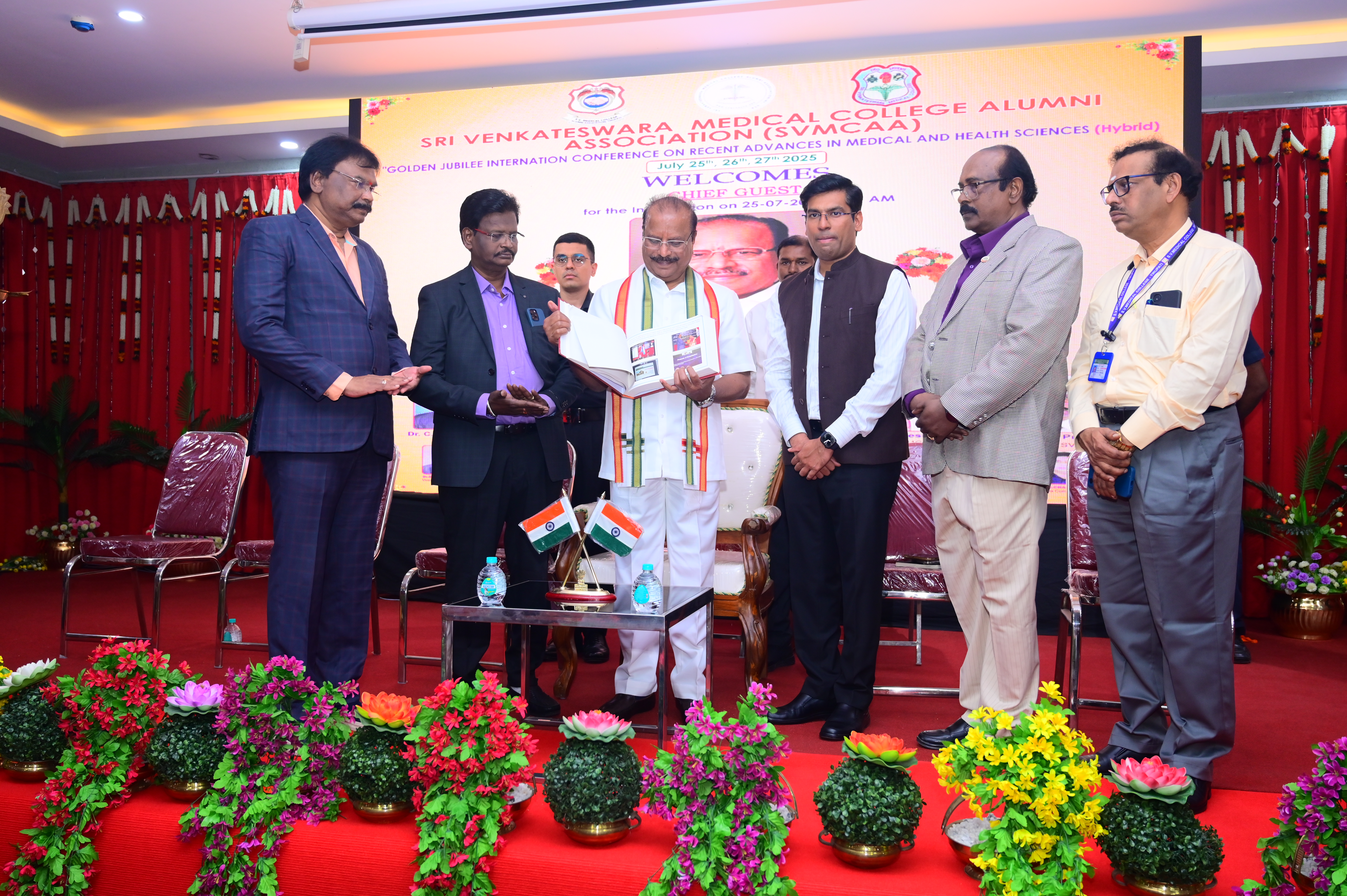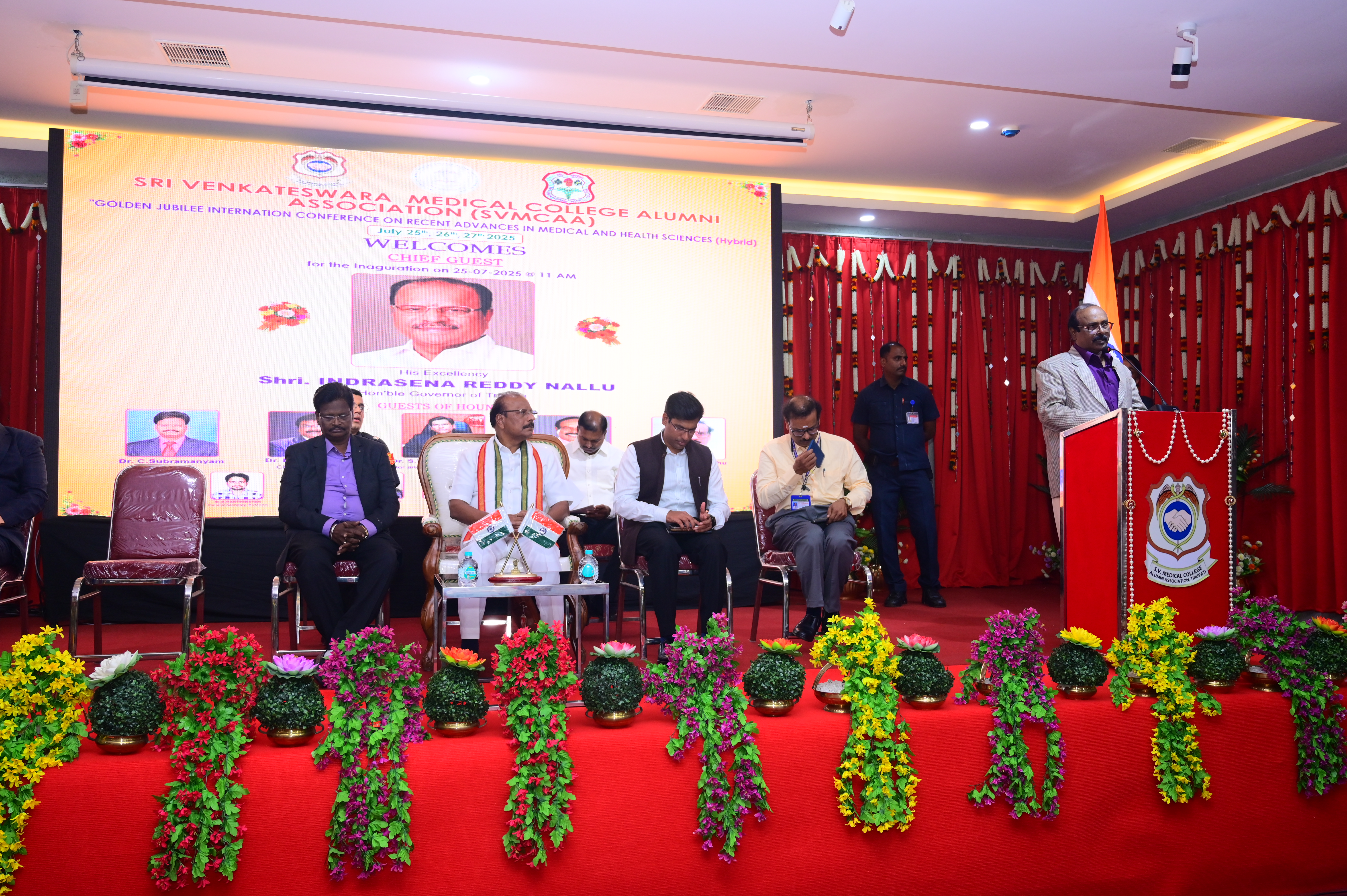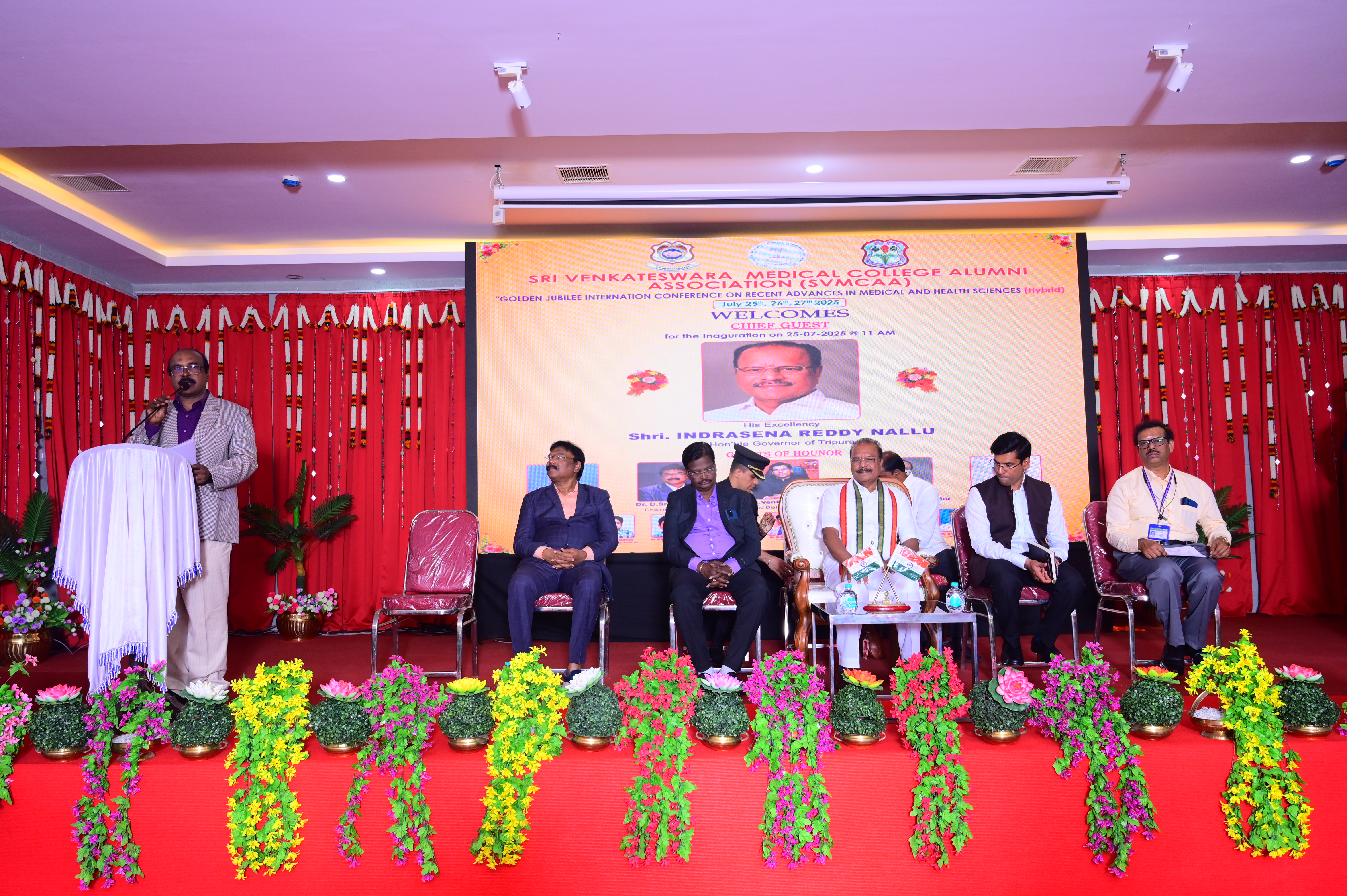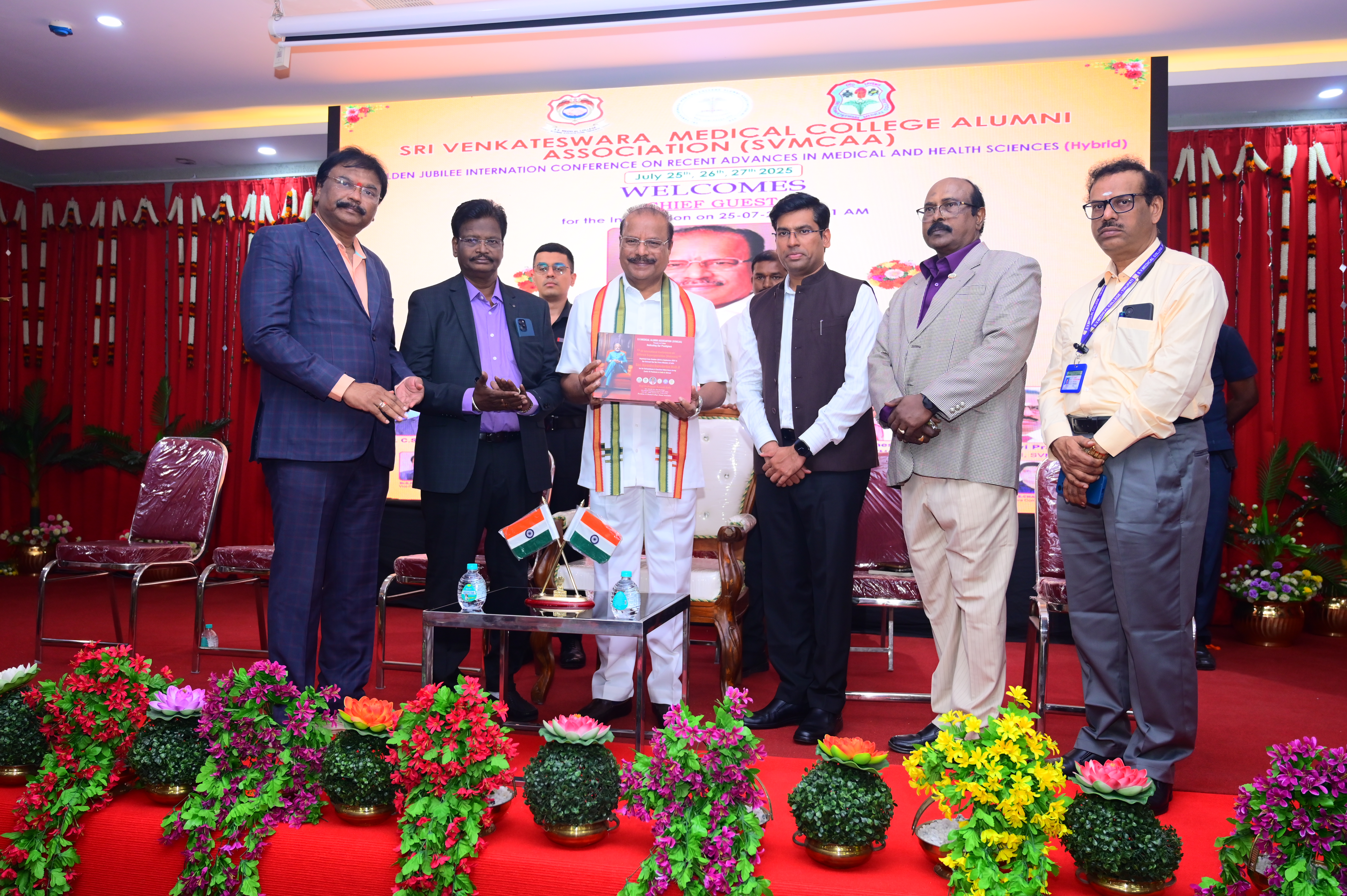 This is the information about the 52nd Conference "Golden Jubilee International Conference on Recent advances in Medical and Health Science “was held from 25th ,26th & 27th of July 2025 from morning 8.30 am to evening 6.00 pm with 40 above renowned speakers from India and abroad and jointly organized by S. V. Medical College Alumni Association (SVMCAA), Tirupati & S. V. Medical College Alumni Association USA Inc. The Andhra Pradesh Medical Council has awarded accreditation of 6 (Six) CME Credit hours for this Conference. Under the Chairman ship of Dr. Rayapu Ramesh Babu, President, SVMC Alumni Association the conference was inaugurated by the Chief Guests: 1. His Excellency, Shri. N. Indrasena Reddy, Governor of Tripura and other guests are 2. Dr. S. Venkateswar, District Collector & Magistrate, Tirupati Districct,3. Dr. C. Subramanyam, MLC, Govt. of AP ,4. Dr. D. Sreehari Rao, Chairman, AP Medical Council,5. Dr. G. Ravi Prabhu, Principal, S V Medical College, Tirupati 6. Dr. I. V. Ramachandra Rao, Observer, APMC were participated. On this occasion the chief gust unveiled the SVMCAA 50 Online conferences book let which we are going to submit it to the Hon’ble Prime minister Shri. Narendra Modiji. Around 600 in person delegates and another 500 delegates in online actively participated in the conference. Thank you all 🙏