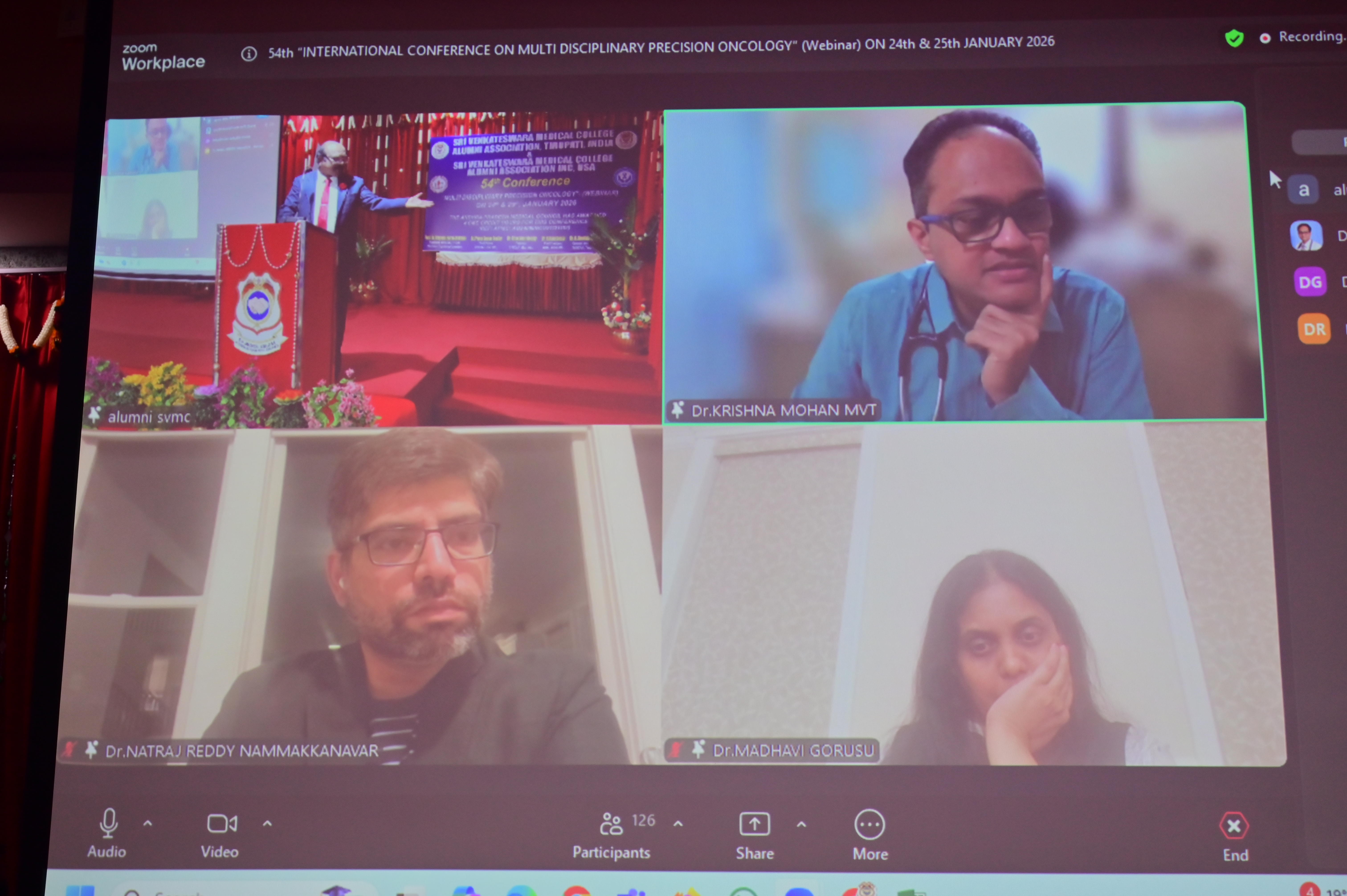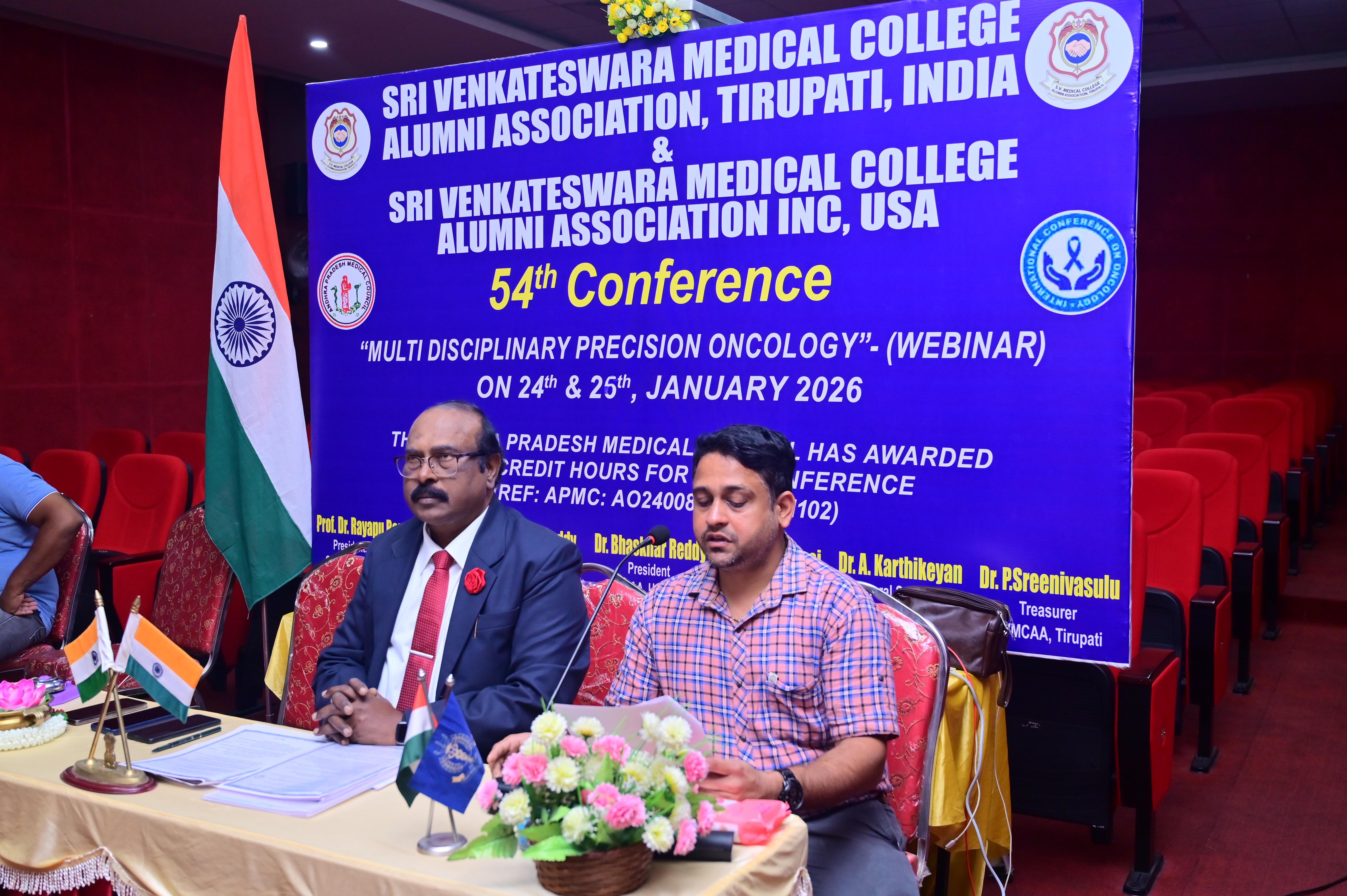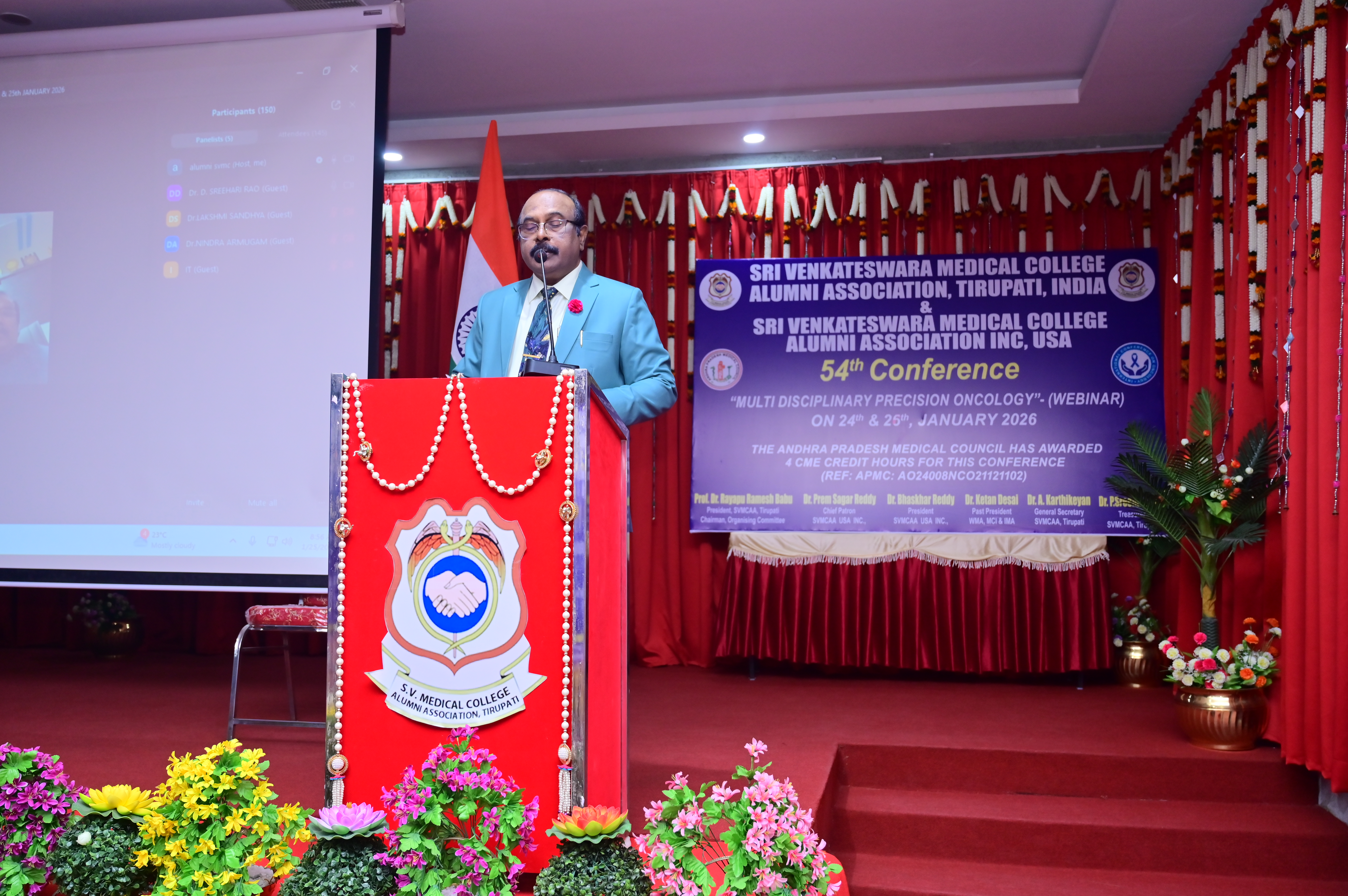 The 54th International Conference on “Multidisciplinary Precision Oncology” was successfully held as a webinar on 24th and 25th January 2026, from 9:00 AM to 6:00 PM on both days. This prestigious academic event featured 32 renowned speakers from across India and abroad and was jointly organized by the S. V. Medical College Alumni Association (SVMCAA), Tirupati, and the S. V. Medical College Alumni Association USA Inc. The Andhra Pradesh Medical Council (APMC) awarded 4 (four) CME Credit Hours for this conference. The conference was conducted under the Chairmanship of Prof. Dr. Rayapu Ramesh Babu, President, SVMCAA, and was formally inaugurated by the following Chief Guests Dr.Dilip Bhanushali – National President, Indian Medical Association (IMA)Dr. D. Sreehari Rao – Chairman, Andhra Pradesh Medical Council. P. Krishna Prashanthi – Renowned Physician. Other distinguished guests who graced the occasion included. I. V. Ramachandra Rao – Observer, Andhra Pradesh Medical Council. G. Parthasarathi Reddy – Vice-President, SVMCAA. A. Karthikeyan – Paediatrician and General Secretary, SVMCAA. Khader Faheem – Secretary, SVMCAA, Tirupati, Dr. Haribabu – Joint Secretary, SVMCAA. The conference was a grand success, marked by excellent participation, high-quality scientific presentations, and meaningful academic discussions on the latest advances in Multidisciplinary Precision Oncology.